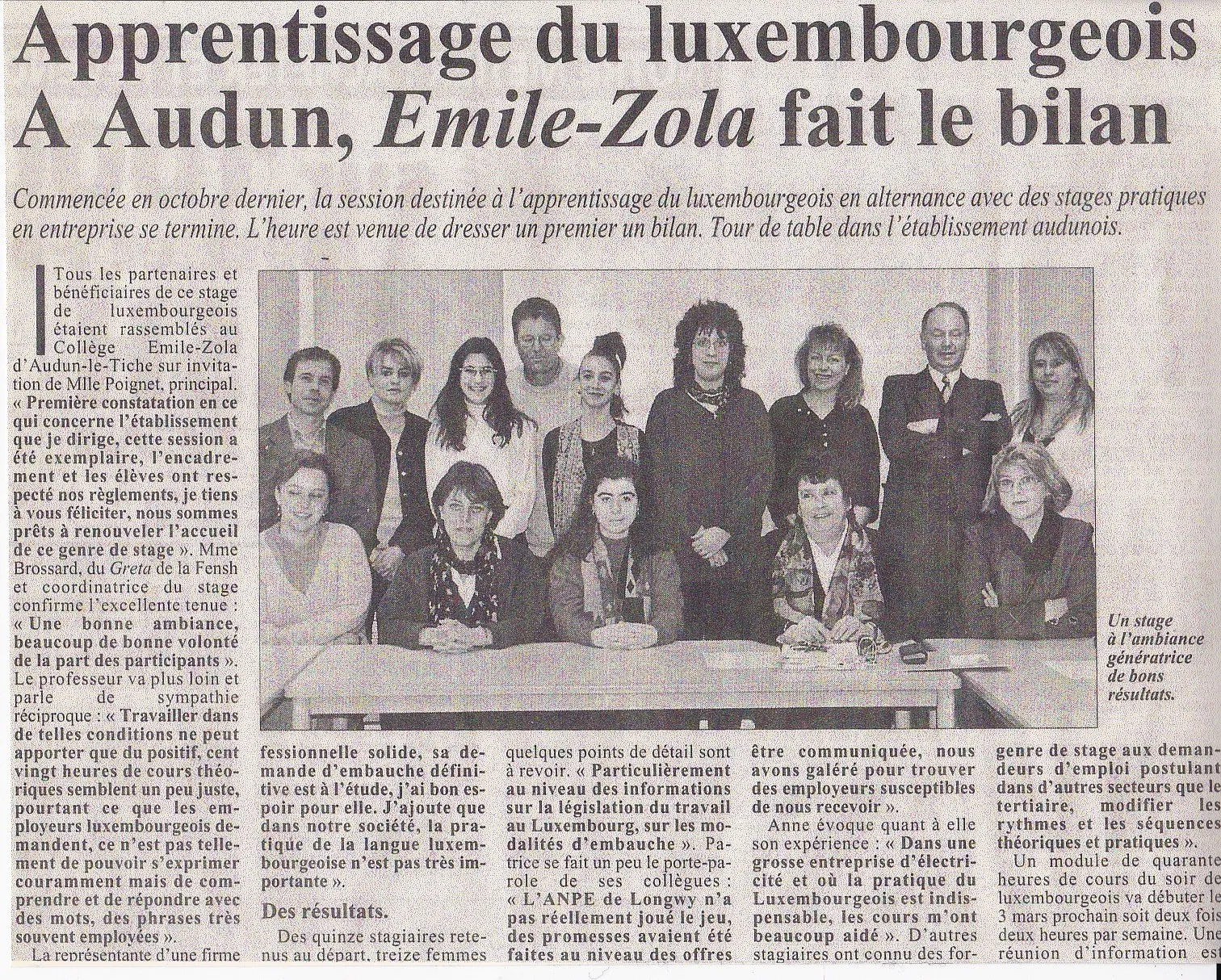 Cours de luxembourgeois Apad Metz 2003
