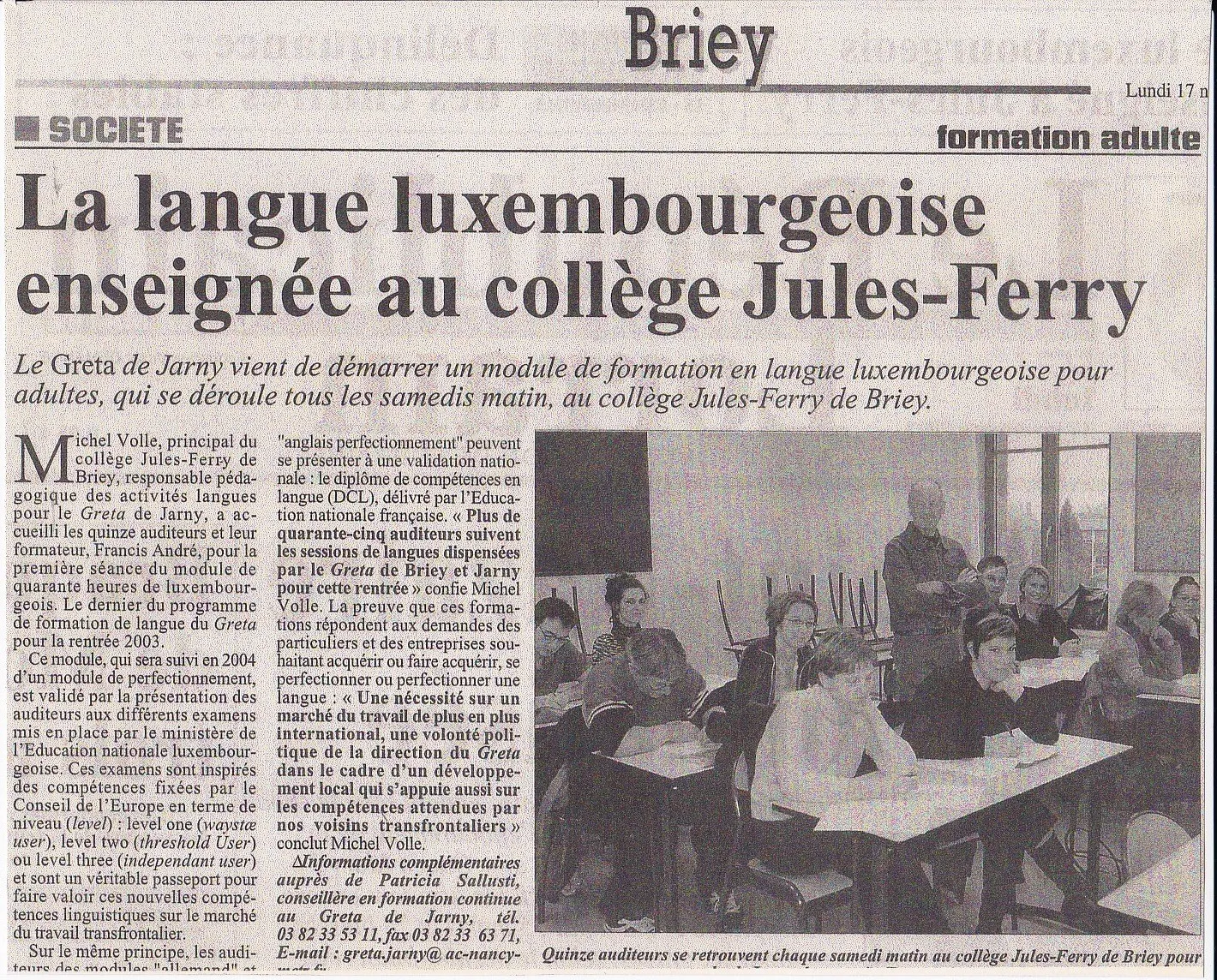 Cours de luxembourgeois Lycée Jean Zay Briey 2003